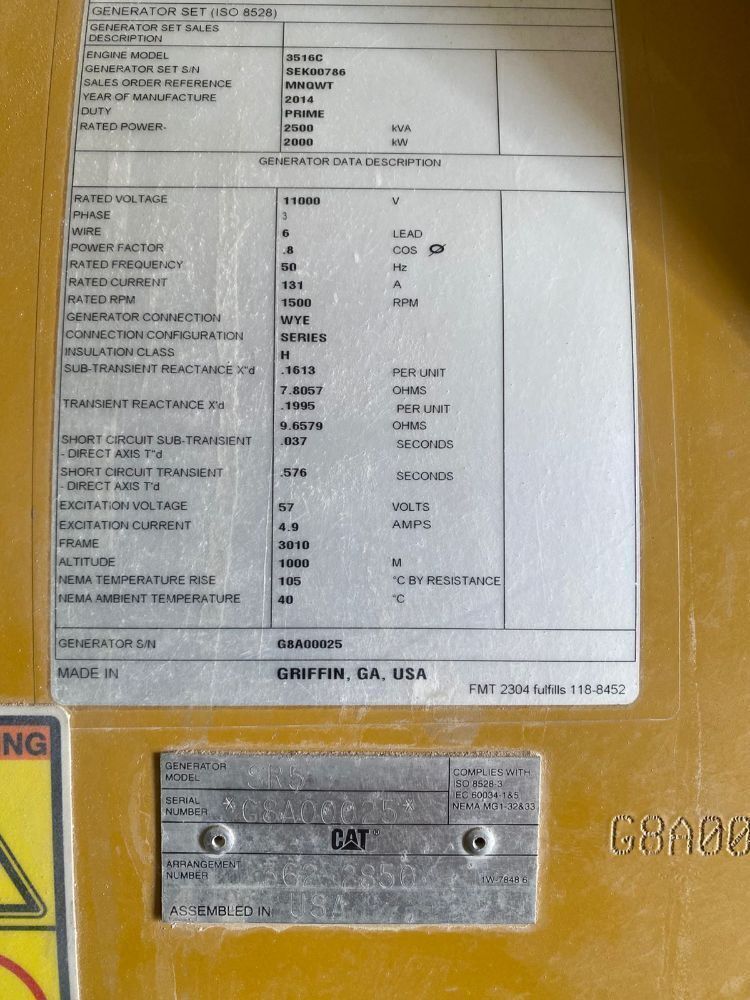 CAT Engine, 2000kw (Used, Qty. 5) enclosed