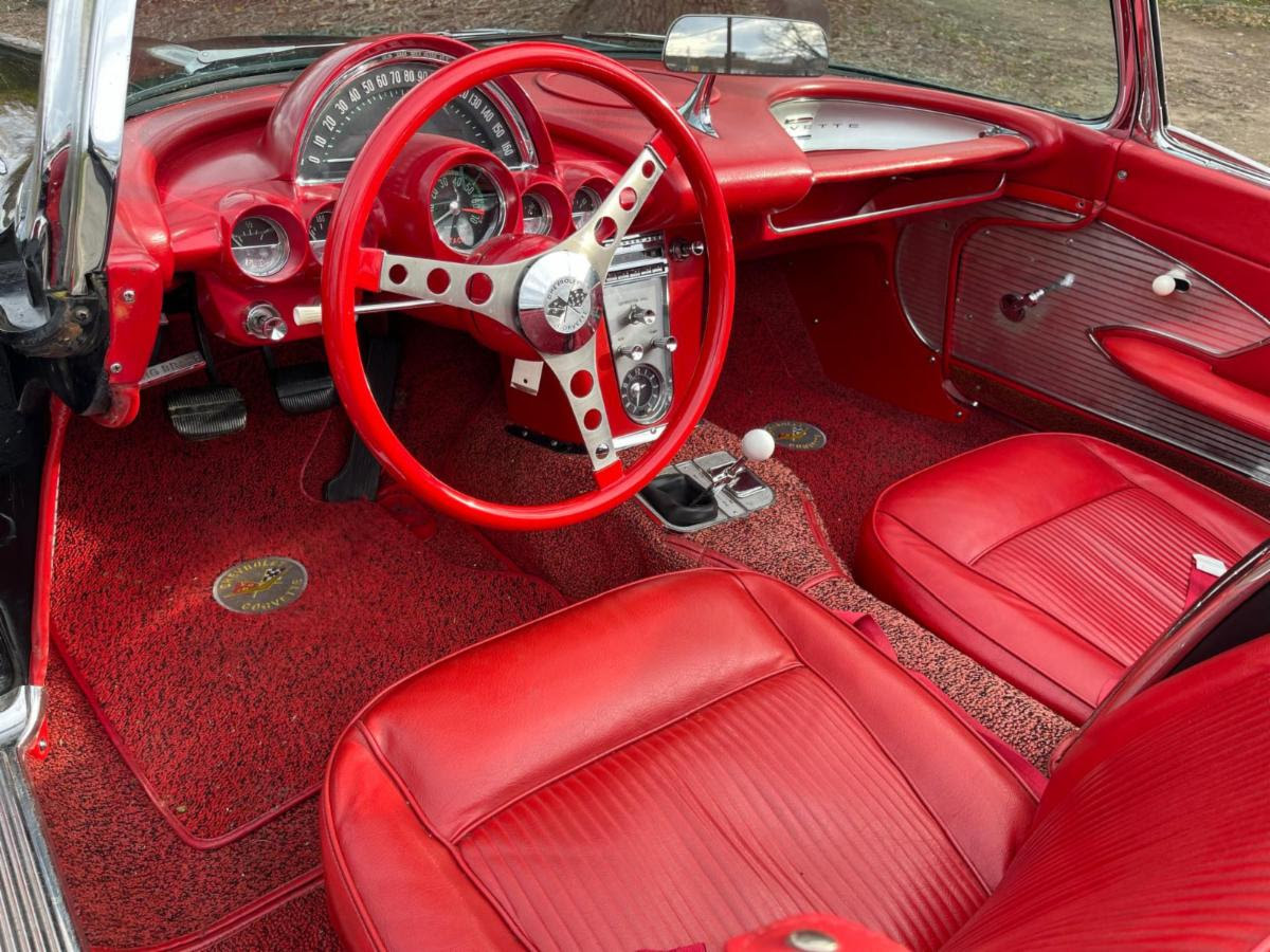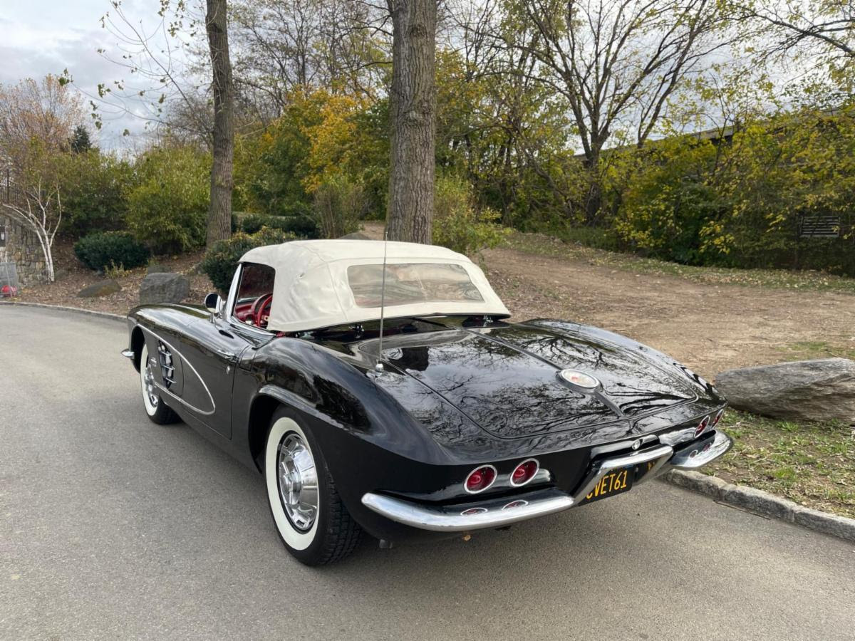 This beautiful 1961 Chevrolet Corvette is a very attractive driver with a 4-speed manual and two tops. Black with red interior. 283 V8 with 270hp linked to a 4-speed manual gearbox. A black-plate California car that runs, drives, shifts, and stops very well. The white convertible top is also in good condition and all gauges work as they should. There are some scratches and chips over the front end, hood, and rear deck. Very presentable and clean interior. Owner’s Guide and some other booklets are included in the sale. Very clean and solid underside and frame. An honest and straight car overall. A very desirable year for the C1 Corvette. This highly collectible American icon is not to be missed.
