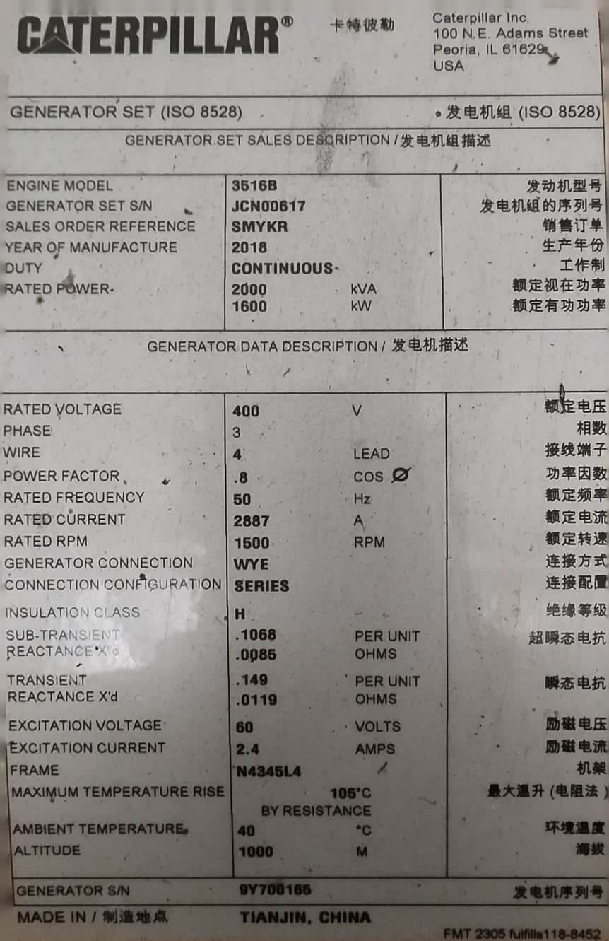 REDUCED 60 units caterpillar 3516B Diesel generator