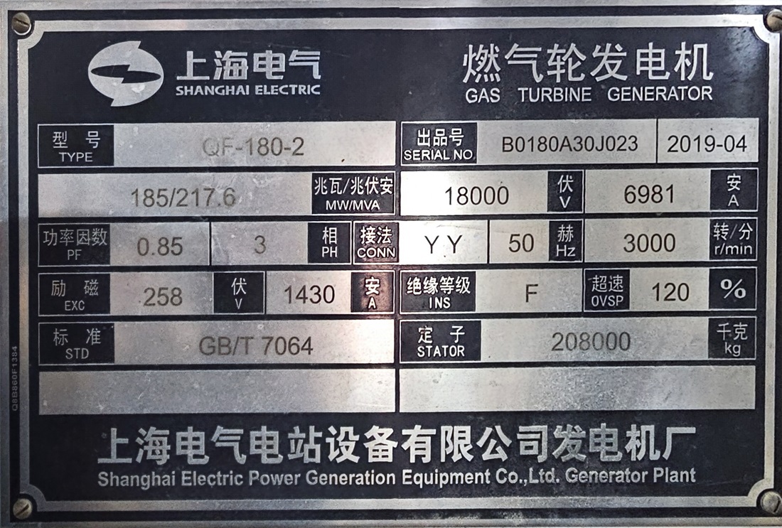 Gas Turbine generator model:QF-180-2