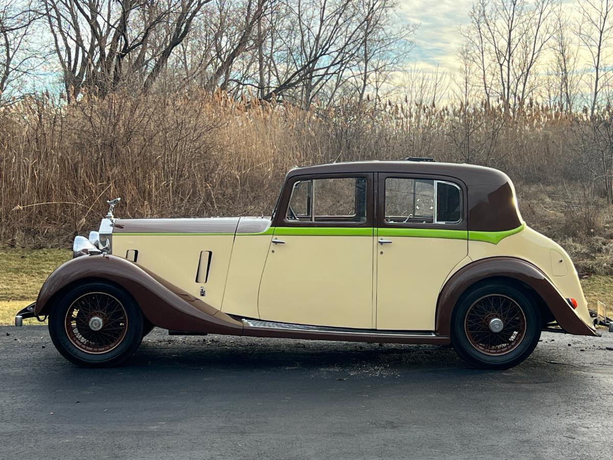 This 1937 Rolls Royce 25/30 with Hooper Coachwork is a nearly presentable driver requiring interior work. Brown over tan with brown interior. Runs and drives. The paint and chrome show quite well but the interior needs cosmetic restoration. Only the front seat bottoms are in place and the rest are missing from the car. The door panels, headliner, and roof also require attention. Simply put, this is a good old car that the previous owner was unable to finish and it wouldnt take much to bring it to the next level. A straight car with a lot of potential, heres your chance to own a lovely Hooper bodied 25/30 and complete the dream.