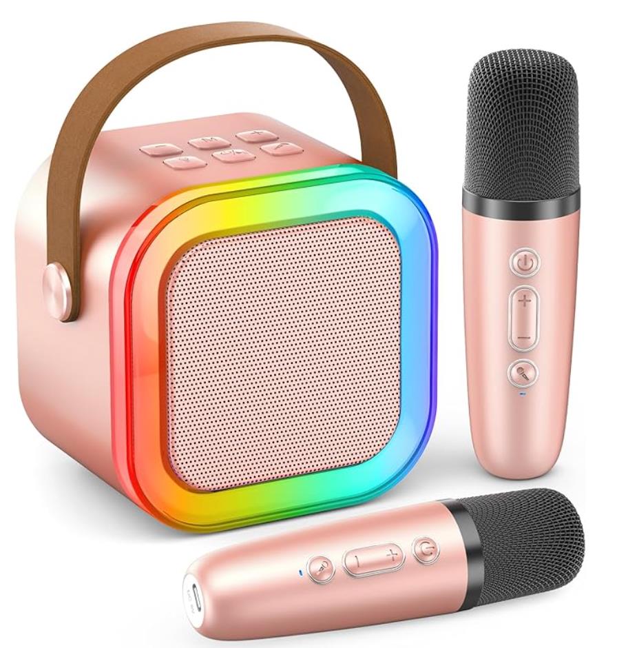 Mini Karaoke Machine for Kids Adults, Portable Bluetooth Speaker with 2 Wireless Microphones, Trendy Birthday Gifts Toys for Girls Ages 3, 4, 5, 6, 7, 8, 9, 10+ Years Old Home Family Party (Pink)