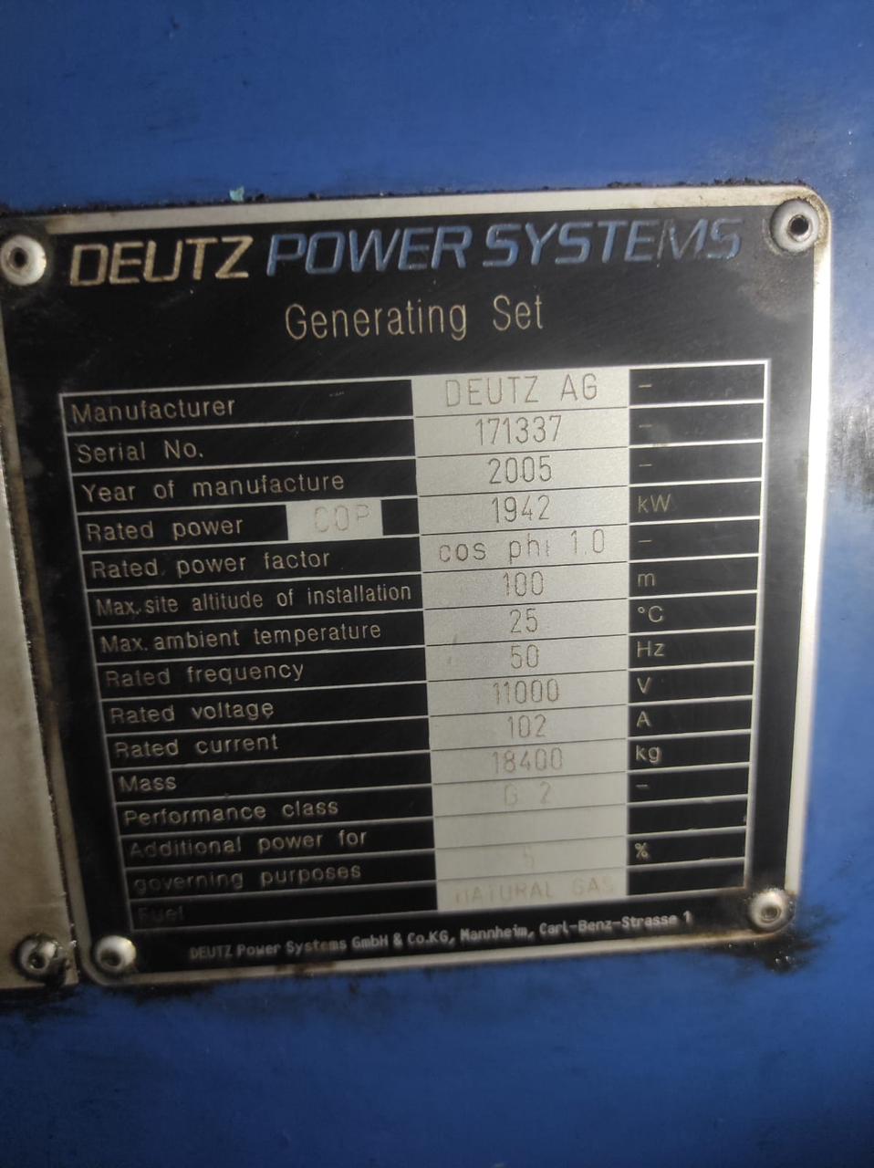 3 Nos - Deutz GAS Engine / Generators - TCG 2020V20 , 1942 KW , 50 Hz, 11000 V , Year 2005
