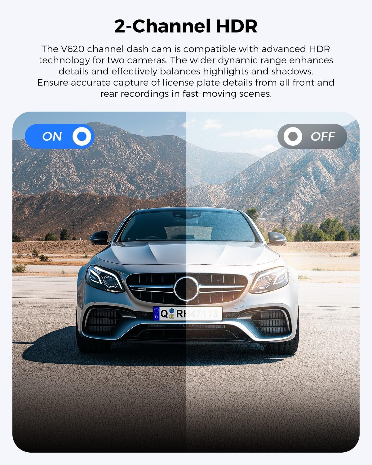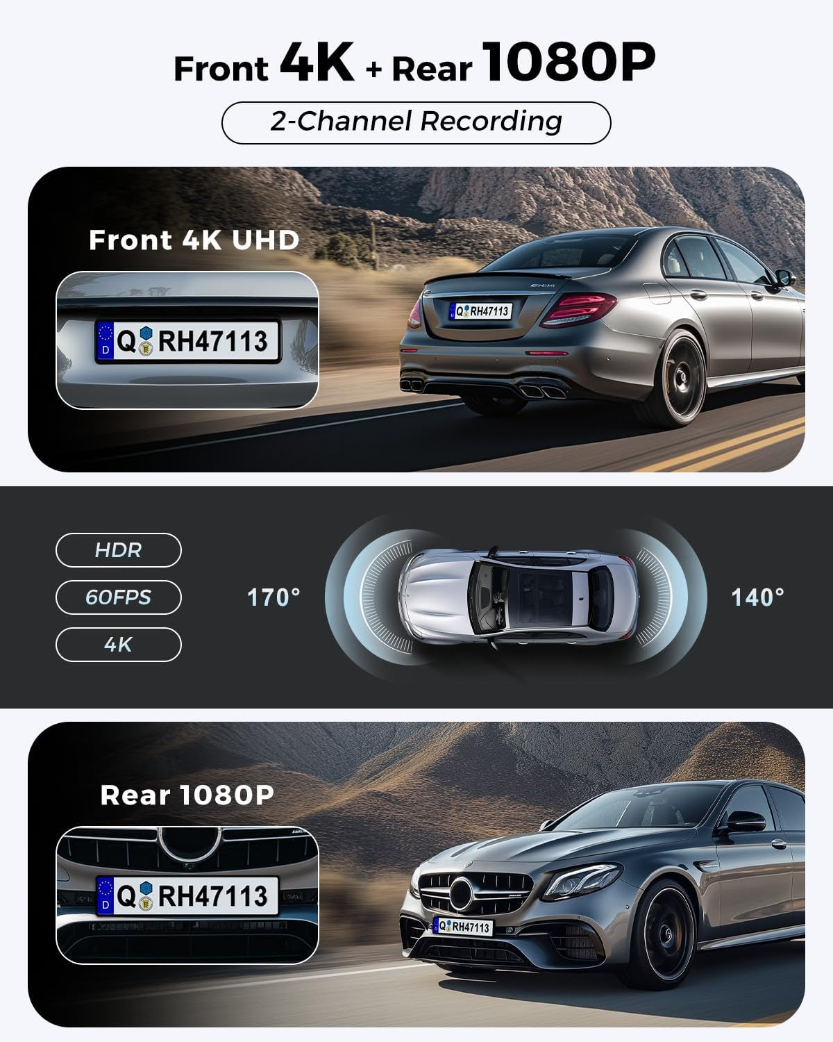 4K+1080P FHD Dash Cam Front and Rear, Dual Dash Camera for Cars with Night Vision, 2 Channel HDR Dash Camera, 24H Parking Mode Car Camera, Built-in GPS, WDR, 170°Wide Angle, WiFi 6, Free 64GB Card