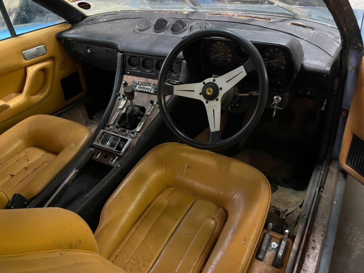 This 1981 Ferrari 400i is an extremely rare right-hand drive example with a desirable 5-speed manual gearbox. Wearing an attractive color combination of light blue metallic over tan leather interior. A highly original car in need of complete restoration.It comes largely complete and intact.Not currently running as the engine is partially dismantled. An exciting project and opportunity for any Ferrari collector or enthusiast.