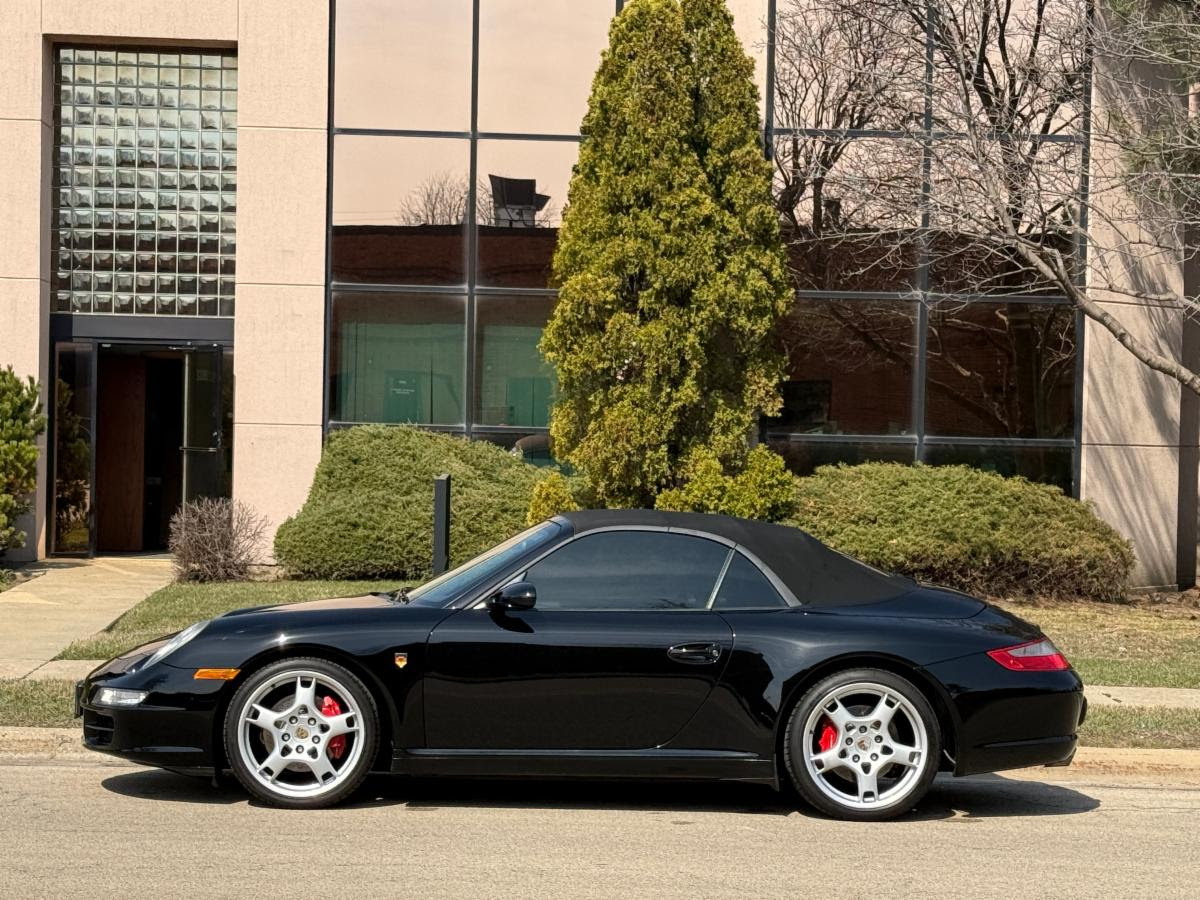 This 2006 Porsche 911 Carrera S Cabriolet is an extremely desirable 6-Speed manual example and an increasingly collectible and sought-after 997 generation 911. Triple black with 98k miles. This Carrera S presents in excellent condition throughout and is offered with a clean Carfax report. The hood currently has a carbon fiber wrap that was applied by the previous owner for aesthetic reasons and can be easily removed if desired. This beautiful car was clearly well cared for and runs and drives fantastic. Sure to satisfy any Porsche enthusiast.