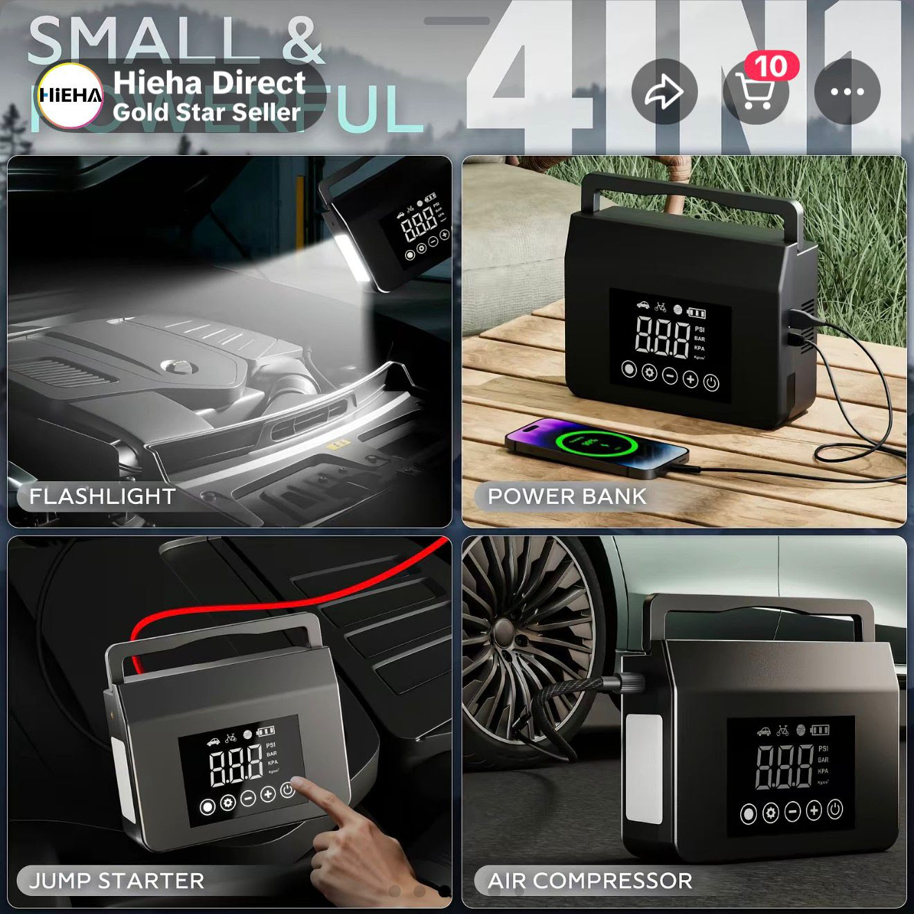 Portable Car Jump Starter with Air Compressor and Power Bank. 1000 Units. EXW Los Angeles $23.50 Unit.