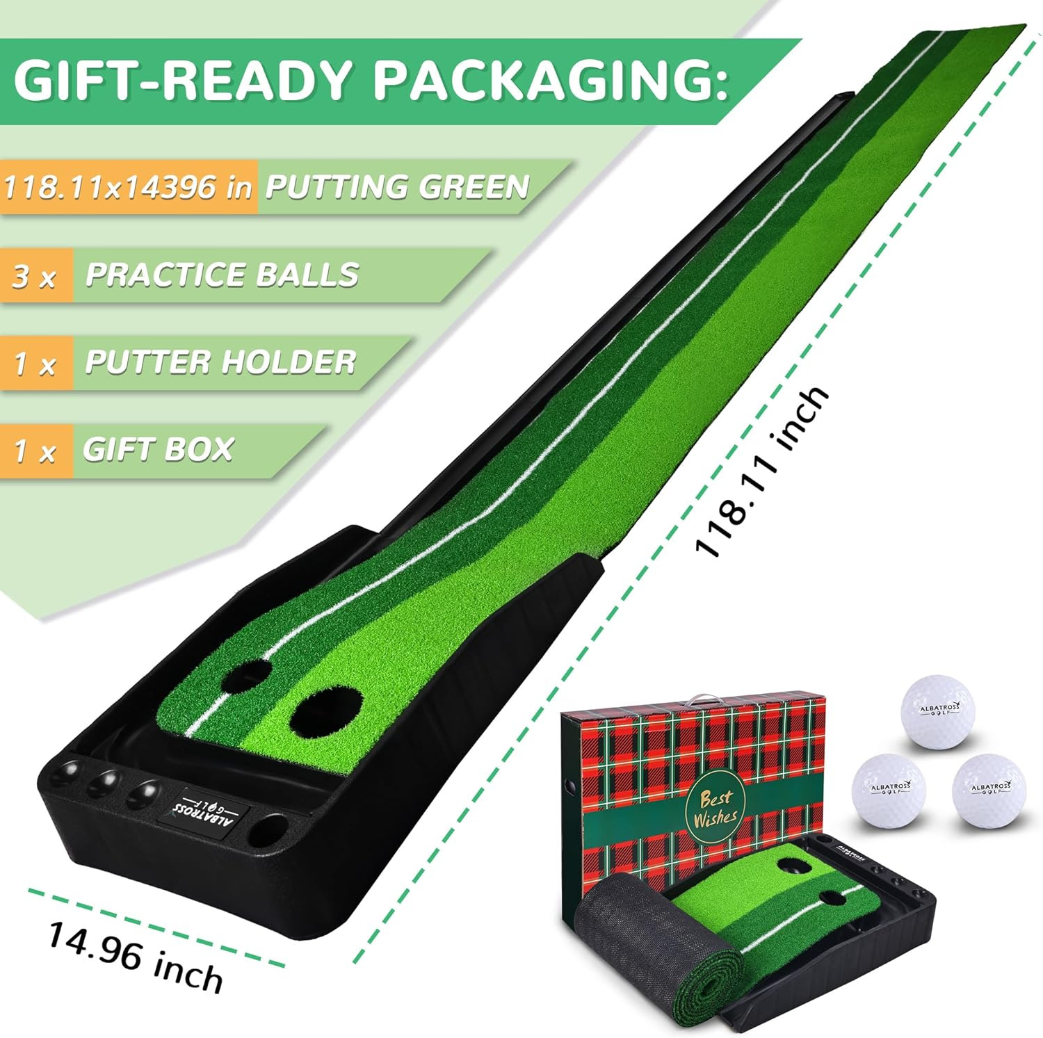 Fitvids Premium Automatic Ball Return Golf Putting Mat, Portable Indoor Golf Practice Green with Alignment Guide & Solid Base, Ideal for Home or Office and Golfers,