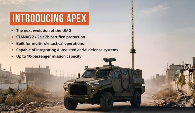 Developed with flexible mission configurations, the APEX can be equipped with optional systems including roof hatches, turrets, surveillance equipment, and specialized operational systems, allowing organizations to tailor the vehicle to their specific mission requirements.