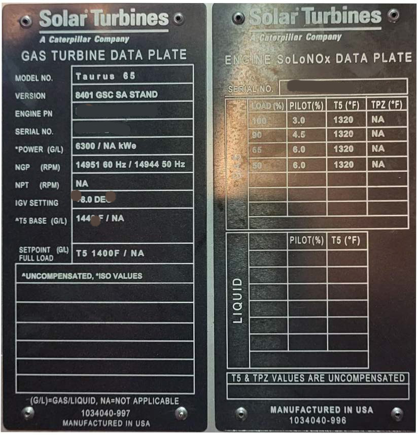The Solar gas turbine and gear box is new from 2022. In 2022 Solar owner replaced the turbine and gear box from 2011 for new ones.