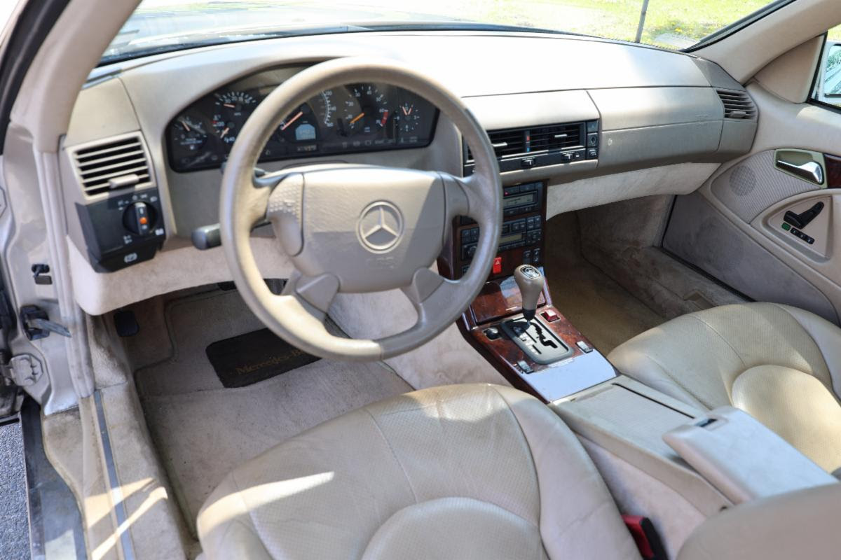This 1998 Mercedes-Benz 500SL is an excellent driver with 109k miles. Metallic champagne with beige leather interior and factory hard-top. It runs and drives great but would benefit from minor cosmetics. These cars are known for their superb build quality and bulletproof reliability and this car still feels very strong and solid out on the road. The Carfax report shows a minor accident reported in 2011 and there are a few blemishes on the front bumper as well the body in a few areas. The wheels are also a bit scuffed up and the interior would benefit from a good detailing. These cars represent an excellent value in the collector car market.